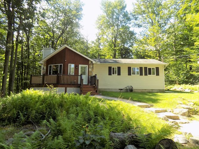 Extremely Affordable 3br, 2Bath Ranch in Very Private Lake in the Clouds! This home is set on a very Private Road surrounded by Nature and Next to OVER 290 Acres! Includes an Open Floor Plan; Master Suite w Private Bathroom; Living Room w Stone Propane Fireplace and Cathedral Ceiling; Eat-In Kitchen w Center Island, Newer S S Appliances and Pantry; Laminate Flooring; New Front and Rear Decking and Sliders! House Generator w Transfer Switch! Nice, Private Circular Driveway leads to the Detached 2-Car Garage PLUS 16' x 12' Utility Shed w Electric and Workshop! Enjoy the Fire-Pit in the Rear Yard. Enjoy all that Lake in the Clouds has to offer including a New Private Beach; Excellent Fishing on this Non-Powerboating Lake; Tennis; Picnic Grove and So Much More. Wireless security system included.