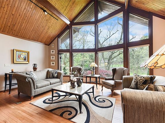 This incredible Lindal cedar contemporary home sits on a serene, nearly 1.5 acre lot in the NHSD. It is close to McKnight Rd, w/in walking distance to schools and parks, 5 min to I-279, 10 min to Pgh, & 15 min to Oakland. The original owners have beautifully maintained and updated their home over the years. The landscaping is parklike with stone walkways, meandering flower beds, perennials and flowering trees. Enjoy coffee on the cov fr porch, dinner on the patio then relax at the firepit area. Upon entering, one sees this is no ordinary house. The LR w/its 16' cedar ceiling is striking! Porcelain tile floors lead to the amazing kit w/quartz counters, a 2-level island, 6-burner gas range top, dble oven, warming drawer, bev ctr, custom cabs and glass subway backsplash. A built in work area with file drawers, glass cabs and soapstone counter in the den is great! A stone fireplace w/heatilator in the FR is perfect for gathering and FR drs lead to the gorgeous all-season sunroom addition.