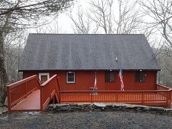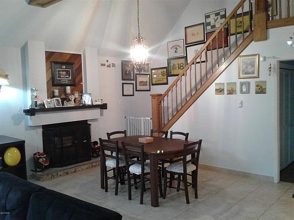 Beautiful well kept Chalet in amenity filled Saw Creek Estates. Open floor plan with a fire place in the dining room. Beautiful tile flooring, wood beams and wood railings and banister. Must see the beautiful woodwork. Modern Kitchen with granite counters and appliances. This home is in a quiet cul-de-sac with plenty of off street parking. From the back you'll have a nice wooded view. Low Taxes!! The deck has a private setting to enjoy. Saw Creek has pools, restaurant, bar, ski, fitness center, security, ponds and very knowledgeable employees. This is a very well run community. Best in the Poconos.