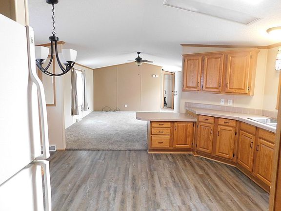 This "MUST-SEE" air-conditioned single-wide has a wonderful layout! This home features a beautiful open kitchen with oak wood cabinetry, a built in glass china cabinet, newer flooring and light fixtures throughout, along with skylights in both bathrooms and kitchen. There are two spacious bedrooms, two full baths and a utility room. The master bathroom boasts a large garden tub, shower and spacious walk-in closet. Window treatments, stove, dishwasher and refrigerator are also included. Lot rent at Knollwood Estates is $290 for the first person ($10 additional per person) per month. Applicants over the age of 17, must complete a Knollwood Estates application. Only applicants with an excellent credit history, a very good background, along with meeting our other requirements, will be accepted to live in this community.