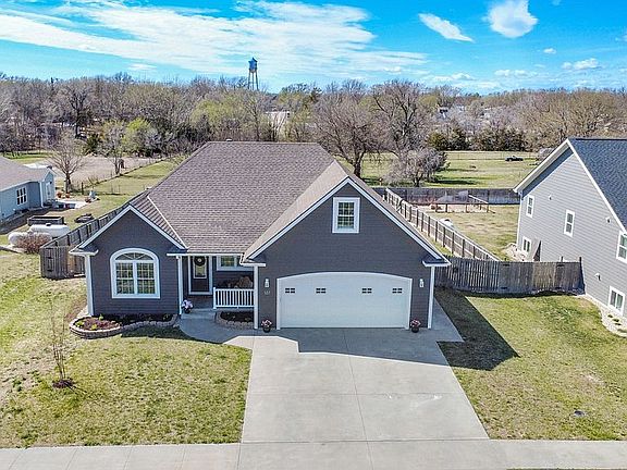 Stunning Traditional Home with Modern Amenities in Riley, KS! Experience the perfect blend of traditional charm and modern upgrades in this 5-bedroom, 3-bathroom home with a dedicated office, offering 3,000 sq. ft. of beautifully updated living space across three levels, creating an expansive and open feel. Built in 2013, this home is located in the desirable Fox Run Edition on the east side of Riley, sitting on the edge of town to provide a peaceful, country feel with no neighbors behind you. Inside, you'll find high ceilings throughout, adding to the spacious atmosphere. The open-concept design seamlessly connects the living room, dining room, and kitchen, making it perfect for entertaining. The main-level living room opens to a large deck, extending your living space outdoors for entertaining and relaxation. The kitchen features custom wood cabinets, a spacious walk-in pantry, and updated finishes, while the living area is anchored by a cozy fireplace. Every bedroom is generously sized and includes a large closet with built-in organization, ensuring ample storage and functionality. The home includes two master suites, with one featuring a luxurious spa retreat bathroom complete with elegant chandeliers, custom tilework, and a stunning walk-in closet. A new tankless water heater and water softener provide efficiency and convenience and a storm shelter for safety. Outside, the 0.40-acre lot offers a fenced backyard, a large deck, and a 20' x 36' concrete patio, perfect for outdoor enjoyment. A spacious two-car garage provides ample storage and parking. Located in the highly sought-after Riley County USD #378 School District, this home also offers easy access to Kansas State University and Fort Riley, just 15 minutes north of Manhattan, KS. Don’t miss this rare opportunity—schedule your showing today! Julie Splichal 785-341-0161 or jsplichal5@gmail.com