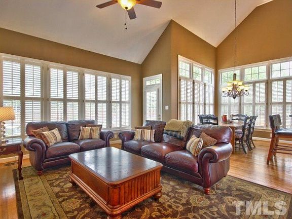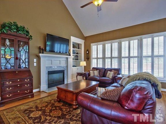 Gorgeous custom built home w/ DESIRABLE 1ST FLOOR MASTER in Danbury-one of Cary's premiere pool/tennis neighborhoods. Private cul-de-sac, side load garage, & stone accents. Soaring ceilings in 2 story foyer/family room. Site finished hardwood floors throughout 1st floor. Large kitchen w/ granite tops, tile bsplash, SS appliances-open to oversized & sun-drenched breakfast room & family room. HUGE bonus room. Fully fenced flat backyard w/ deck! Price Reduced to reflect need for minor paint touch ups needed.