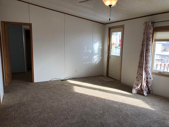 All your living space is found on one level. Enjoy the sunrise on your front deck and the sunsets on your back patio. Two sheds are included along with a drip system for the flower beds. Nice hardboard siding, gutters and newer windows help with maintenance. This 3 bedroom 2 bathroom Champion manufactured home is located in River Bluff Estates in Ft. Pierre, SD. Lot rent is $245/month.