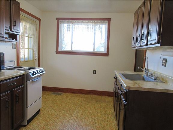 Solid brick home with 3 bedrooms, 1 full bath, and a 2 car detached garage just a few feet from the side door leading into the kitchen. The dining room is open to the kitchen and the living room. All appliances are included in the sale, as well as the dining room table and chairs. The main bedroom is on the first floor, and there are 2 more bedrooms upstairs. The basement is clean and dry. There are two sheds on the property. The 16'x10' shed was built to accommodate a car, and the 8'x8' shed is in great condition and perfect for the mower and yard maintenance equipment. This home has a flat lot and is easy to maintain. The driveway is concrete. The gas and oil lease are included in the sale.