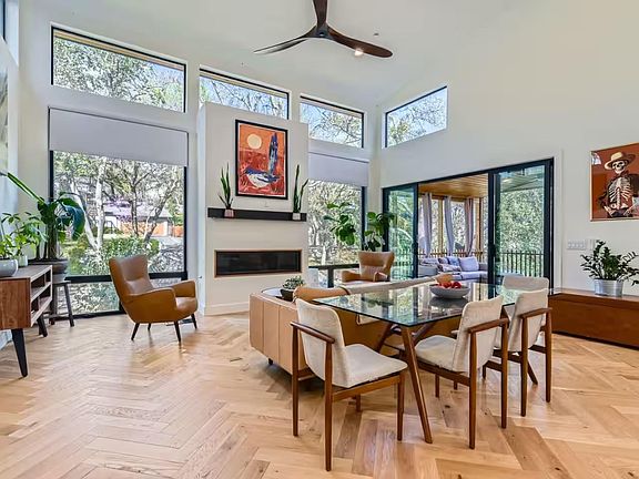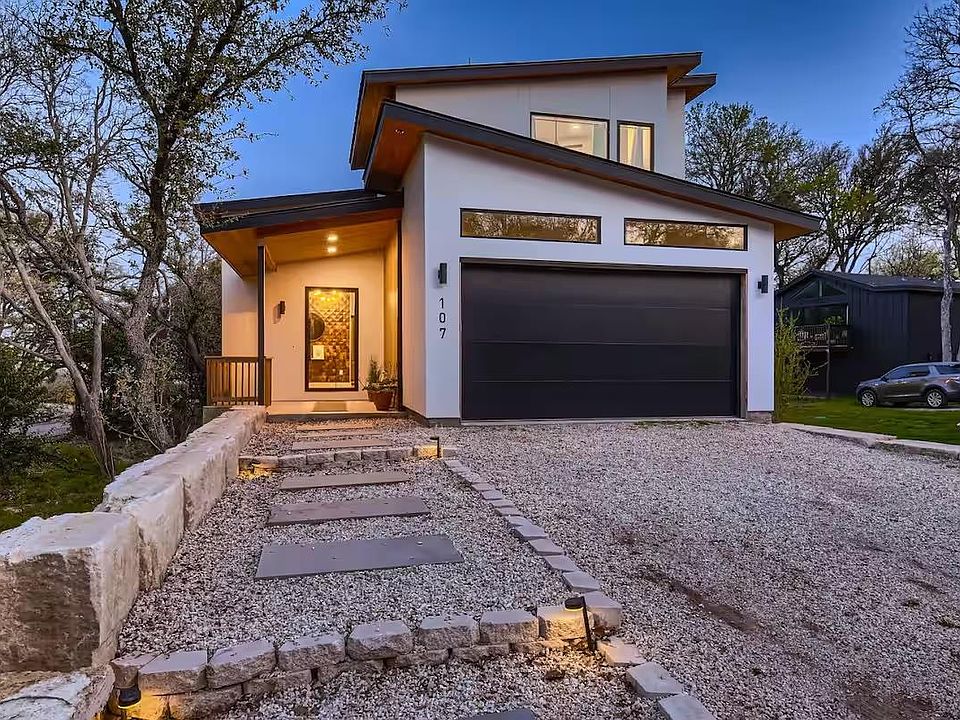 Introducing a stunning newer construction fully furnished home for lease in the esteemed Eanes School district. This expansive residence boasts five bedrooms and 4.5 bathrooms, encompassing 4,500 square feet on a private, wooded 0.36-acre lot. Custom craftsmanship is evident throughout, featuring hardwood flooring laid in a sophisticated Chevron pattern, accent walls, vaulted ceilings, arched doorways, bespoke lighting, and premium windows. The gourmet kitchen, a centerpiece of the home, showcases an extra-wide quartz waterfall island, custom cabinetry, a deep sink with dual faucets, double ovens, and open shelving, catering to both casual family meals and lavish entertaining. Multiple living areas spread across each floor include a main living room with a cozy gas fireplace and sliding glass doors leading to a screened-in porch, perfect for relaxing or hosting guests. The luxurious owner's retreat offers a private balcony and a spa-like bathroom equipped with an oversized walk-in shower, dual vanities, and a freestanding soaking tub, creating a serene sanctuary for unwinding. Lots of trees make for great privacy and a cowboy pool provides a cozy place to cool off.