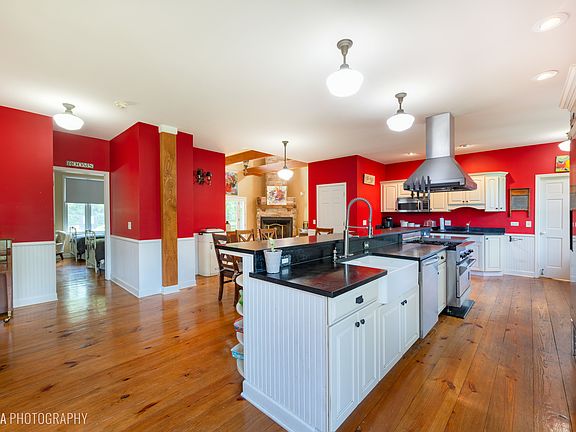 HIDDEN GEM LUXURIOUS YET CASUAL! This expanded farmhouse with about 5,200 sq. ft. of interior space is situated on 1.6 acres and includes a three-level barn with a silo, a two-car garage, two additional outbuildings and an in-ground pool. The original house, the barn and the outbuildings were built in 1897 and they've been extensively updated and lovingly cared for over the last 20 years. These updates include: a 2002 rehab of the original house with new plumbing, electric, windows and HVAC; a 2005 addition that included a new kitchen, a mudroom, 3 bedrooms, 2.5 bathrooms, an HVAC unit, a septic field, tanks, a waste line and a swimming pool; in 2019, New pool heater in 2023, all pool equipment included. All new roofs were installed to all buildings and new decking was added to the barn and the outbuildings; in 2020, a new well pump and 220 gallon tank were installed along with a new pool liner, pump and ball valves. As you near the home, a flagstone walkway leads to a beautiful wrap-around porch. The open, eat-in kitchen comes complete with commercial grade appliances, plenty of counter space and numerous cabinets for the gourmet cook. The kitchen opens up into a spacious, comfortable family room with cathedral ceilings, huge timber beams and an abundance of sunlight. The sun-filled main level also offers two-wood burning fireplaces, a guest room with a full bathroom, two dining and sitting areas, a pool/recreation room, a powder room and an office. The 2nd floor includes a large primary bedroom with a remodeled bathroom and abundant closet space, 4 additional, sizable bedrooms, 3 bathrooms and a convenient laundry room. There are two basement areas that can be utilized for additional storage, an exercise area, etc. Enjoy the outdoors with your huge in-ground swimming pool that is surrounded by a generous, flagstone patio and grilling area - both completely fenced in. Important: All outbuildings are at about 20 feet from the property line. This was grandfathered in and it enables full use of the property. TRUE IN-LAW ARRANGEMENT POTENTIAL! OWNER HATES TO LEAVE! DREAMS DO COME TRUE ~ DON'T MISS THIS ONE