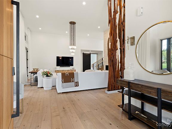 Explore this fully custom and modern home in the beautifully-seasoned and tranquil Bridgewater neighborhood. Situated on a semi-cleared corner lot, allows for floods of natural light throughout the day. 13.5' ceilings in the main common area and the open floor plan create a grand and spacious environment blending functionality and a luxurious lifestyle. This home was built with efficiency and technology in mind. A fully encapsulated and heated/cooled crawlspace provides efficient radiant heating to the entire main floor. High-end materials are visible throughout the home from the custom kitchen and vanities to the unique solid Amazon River wood accent piece dividing the living area. The tastefully landscaped flat backyard has a designated spot for a pool if desired.