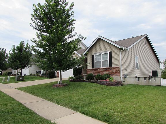 Welcome home to this very nice ranch with brick and vinyl siding along with nice landscaping is a great look. Step inside the entry foyer and see the gleaming 3/4" hickory hardwood flooring that flow back to the spacious vaulted great room, kitchen and dining room. Enjoy the cozy wood burning fire place in the great room. Upgraded kitchen cabinets with brushed nickel hardware, custom tile backsplash, black appliances including electric range, microwave and dishwasher. Vaulted master bedroom with walk-in closet and private full bath with double sinks and tiled shower and flooring. Upgraded lighting throughout including the ceiling fans, 2 more nice sized bedrooms and full bath with tile flooring. Enjoy the patio and view of open ground with vinyl fence. Walk down the rod iron spindled staircase to the permitted custom finished lower level with tile flooring and another full sized living room with custom built ins and a dry bar with cabinetry and built in beverage center. 2 additional large rooms that can be used as bedrooms/toy room, additional full bathroom with tiled stand up shower. Enjoy 300 sq. ft. of additional storage within the laundry room. The home shows great and is like new and easy access to Hwy 70. A great place to call home!