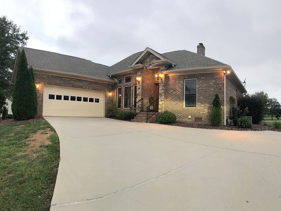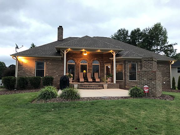 Custom brick ranch home on golf course. Don't miss this beautifully designed home built by Cline Builders. Home features split bedroom floorpan * huge family room with stone gas log fireplace * hardwood and tile floors throughout, carpet in bedrooms. Kitchen features granite countertops stainless steel appliances and breakfast bar. Master bedroom features trey ceilings and his and her walk in closets. Master bath has granite adult height dual vanity and tile walk in shower. Back yard features breathtaking view of the golf course from the 11th hole and outdoor wood burning fireplace.