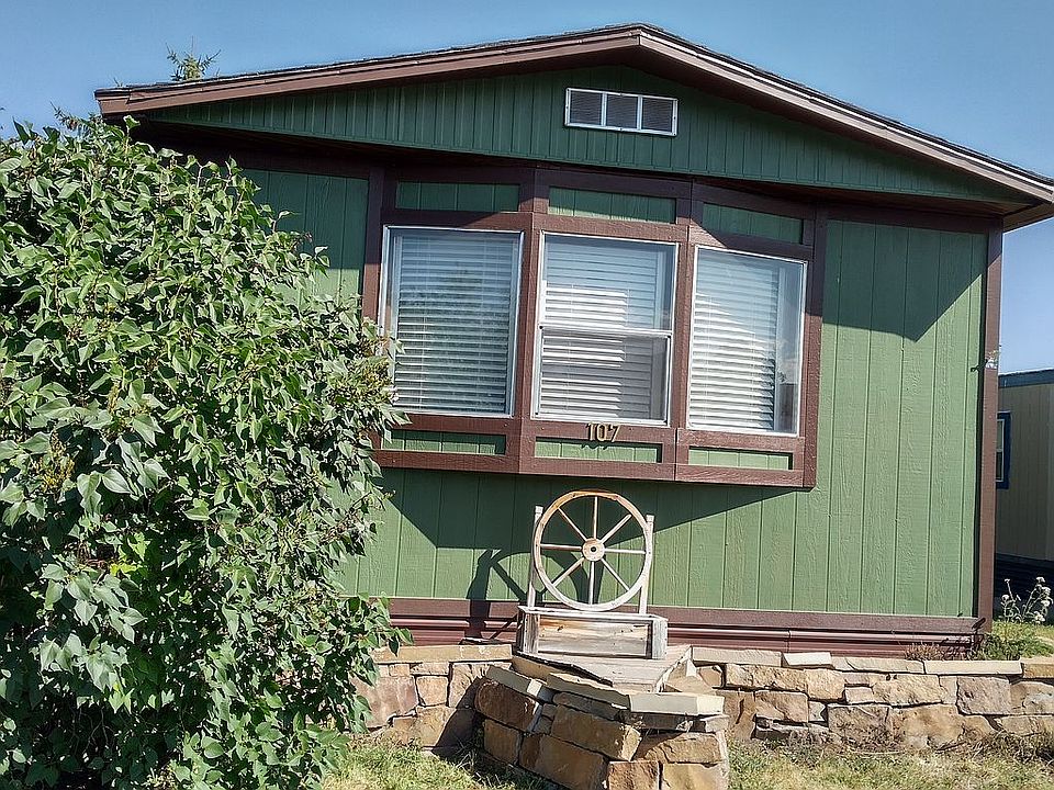 This bright cheerful home boasts many upgrades over the past four years. It has been freshly painted inside and out and has new appliances, kitchen sink, shower, low-flow toilet, etc., and laminate floors throughout. The yard has many mature trees of different varieties to provide shade and privacy and to add to the pleasure of your new home! Located in Covered Wagon Mobile Home Park.