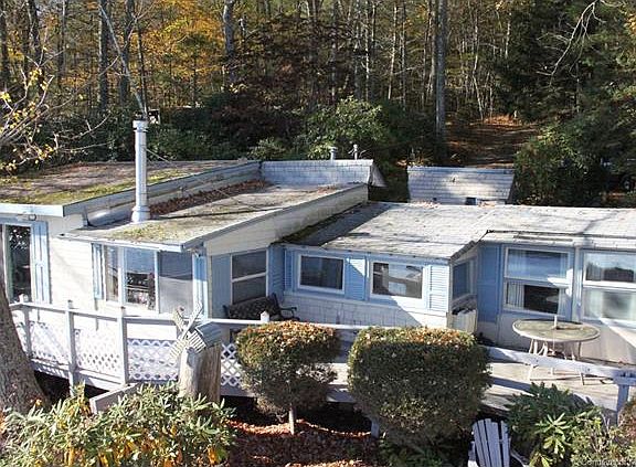 Private appointment only - no trespassing. Great opportunity to own affordable desirable waterfront property on Pachaug Pond. Over 100 ft. water frontage plus 46 ft. dock. This 1+ acres wooded private retreat was formally used as summer camp, but with a few updates could be used for year round living.Camp has gas furnace plus 2 wood stoves for heating.