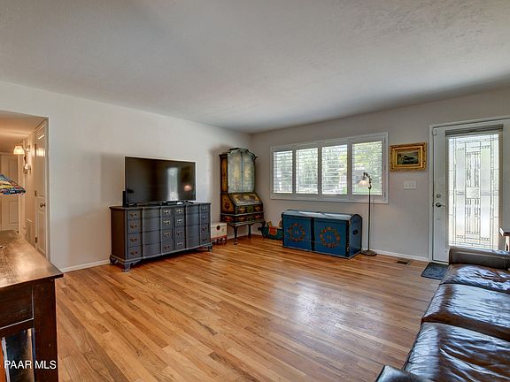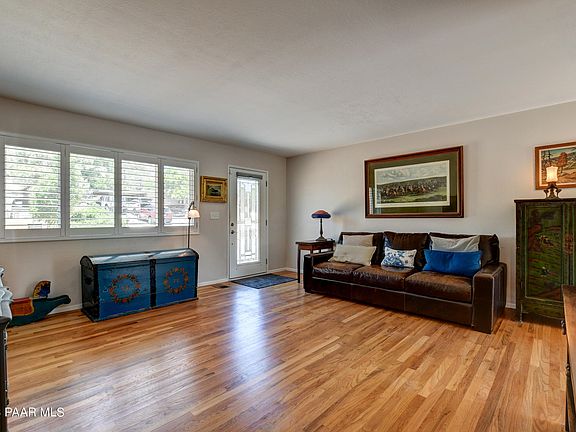 Enchanted Cottage truly a rare find! Brand New Roof!! Prescott Charmer close to Thumb Butte and super hiking trails! over 1/3 acre lot, views of Thumb butte in front! This remodeled beauty features real hard wood floors, updated kitchen with sile stone/quartz counter tops, central A/C, newer hot water heater in 2022 & new dishwasher in 2023, plus plantation shutters and upgraded dual pane windows. Great 3 bed 2 bath with HUGE oversized 2 1/2 car garage 27 deep by 22 wide with insulated door. Very large fenced back yard. RV parking pad with electrical hook ups no HOA to worry about could be a great vacation rental or 2nd home getaway. Charmers like this are a hot item in Prescott Hurry won't last long