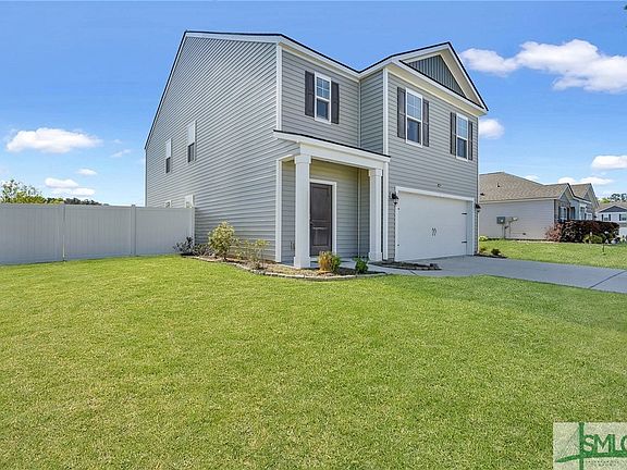 You don't want to miss seeing this well designed 5 bedroom, 3 full bathroom house with 2440 sf of usable space! Downstairs features an open kitchen, spacious dining area and living room with beautiful natural light. Guests can stay downstairs in their private room with a full bathroom off the kitchen. Upstairs in a loft area perfect for reading nook or office space along with 3 other bedrooms which share another full bath. The master suite has a walk in closet with a spacious bathroom with double sinks. The garden tub AND shower really do complete the space! If enjoying the outdoors is your delight, you will be pleased to know that the fully fenced private backyard over looks a beautiful lagoon. Take a short walk to the neighborhood amenities (pool, playground, tennis etc) or a short drive to shopping in Pooler, Gulfstream, and the Hyundai Plant. Last but not least - the washer, dryer and refrigerator will remain with the home! Schedule a tour today!
