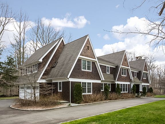 This beautiful six bedroom, Nantucket style colonial, situated on 2.25 level, private acres, has it all, and then some! Enjoy the casual sophistication of this exceptionally designed home, with bright open rooms that flow together for seamless entertaining and every day living.This stunning home boasts a newly renovated, professional kitchen and butler's pantry, a large office with wet bar, first floor guest suite, five en suite bedrooms, and one of three fireplaces in the master suite. Also not-to-be-missed is the large second floor playroom, and a full, partially finished basement with a workout room and a 1,900 bottle, climate controlled wine cellar.