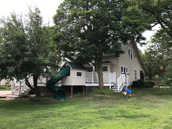 This charming 3 bedroom bungalow is in a perfect location. The large classic covered front porch is a must see. The home is a short walk to Restaurants, multiple parks the YMCA and more. The combination of historic charm and modern high efficiency furnace, hot water heater and more makes this home a must see. The finished basement offers additional living space and tons of storage. Each bedroom includes a walk in closet. Check out the large maintenance free deck with attached play house for kids with built in slide.