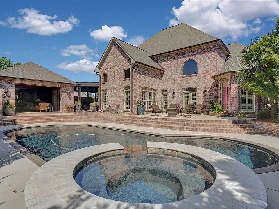 BACKYARD PARADISE: This Home Received the Mississippi Home Builder's Association "Best In Mississippi" Single-Family Addition Award in 2011. 746 Square Foot heated/cooled Pool House. Complete with Sitting Area and a Kitchen that includes microwave, sink/garbage disposal, refrigerator, ice maker and dishwasher. Bathroom with Custom Marble Shower and Vanity. Large Storage Room. Custom Cypress Cabinetry. Granite Counter Tops with oversized Bar. Retractable Screens. Cypress Wood Throughout all Walls and Vaulted Ceiling! Flat Screen TV with Fireplace. Outdoor Cooking with all Stainless Appliances including Gas Grill, Gas Burner, Green Egg and Stainless Storage Unit. Granite Counter Tops. Custom Iron Gate Entry to Pool House and Pool/Hot Tub. Totally Fenced. Very Private from Neighbors. Grand Entry to Home with Stunning Spiral Staircase. House is Approximately 4582 Sq. Ft. 4 Bedrooms and 3.5 Baths. Great for Entertaining. Formal Dining Room. Kitchen has Granite Counter Tops. Gas Cook Top. Double Ovens. Large Pantry. Dry Bar. Breakfast Area. Keeping Room. Plantation shutters. Formal Room with Fireplace, Built-ins and Wood Flooring. Powder Room. A Grand Entry to Master Bedroom. Very Spacious with Sitting Area. Master Bath has separate Vanities and Closets. Upstairs has 3 Bedrooms and Two Full Baths. Great Open Landing/Sitting Area. Three (3) Car Garage with lots of Built-ins for Storage. Refrigerator and Freezer Remains. Circular Driveway and Extra Side Parking Pad. Professionally Landscaped. Irrigation System. Underground Pet Fence. Landscape Lighting. All Brick Home. New Roof.