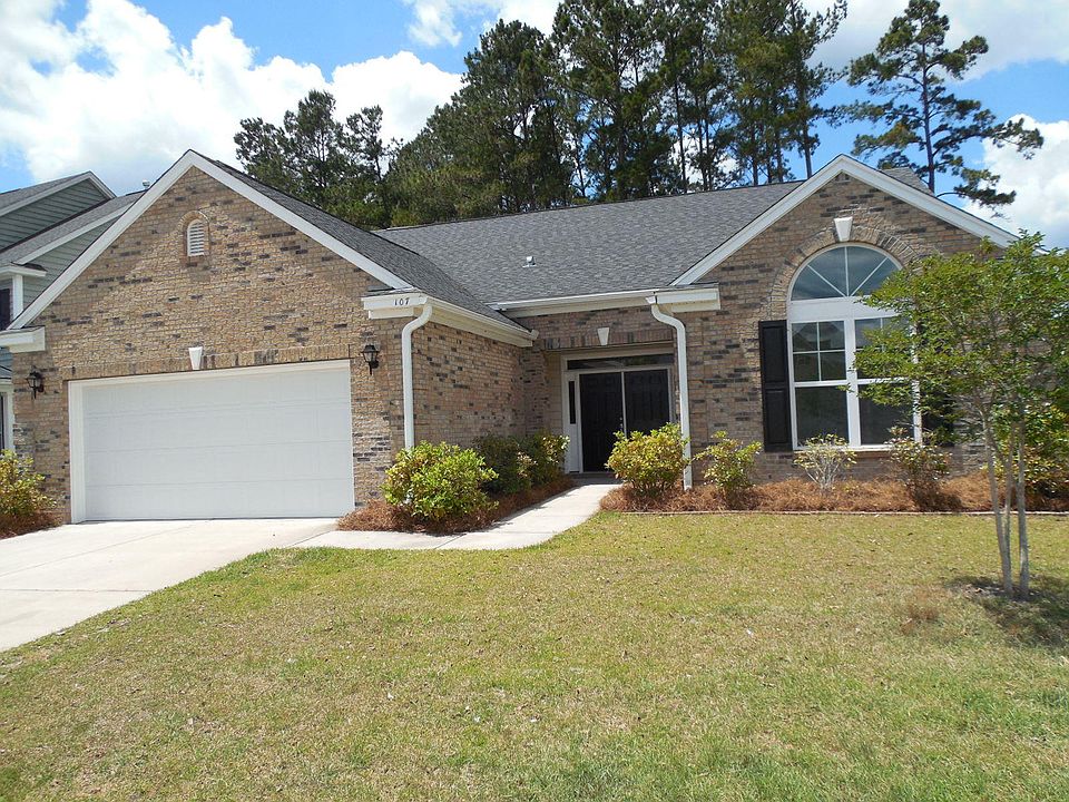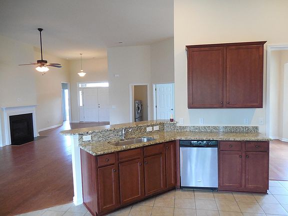 Single level home in desirable Cane Bay Plantation. Open and airy 12' ceilings in main living area and abundant natural light. The kitchen is equipped with 42'' cabinets, granite countertops and stainless steel appliances (new refrigerator). New Paint and Carpet. Nice office off greatroom. Hardwood floors in the foyer, greatroom and dining room. Ceramic tile in kitchen, baths, laundry room and sunroom. Owner's suite has trey ceiling, deluxe bath with garden tub, separate shower, double bowl sinks and large walk-in closet. Home on Cul-de-sac street and backs to woods and pond.