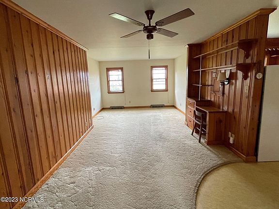 Well maintained home in picturesque Hertford, near downtown. Large lot with storage building, easy maintenance plantings. Home built in 1960 has original wood flooring in many rooms under carpets. Living room with gas fireplace, den with built in desk/book shelves area, kitchen has great storage, 3 BR's-large master BR has walk in closet, plus an additional closet, full bath, great location!