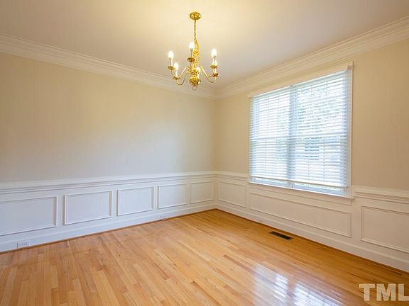 Lovely 3 bedroom, 2.5 bathroom home in Cary! From the covered front porch, enter into the formal dining room and kitchen featuring a beautiful tile backsplash, a kitchen island, and 42-inch cabinets. Admire detailing such as a wood burning fireplace, hardwood floors, and 10-foot ceilings before heading upstairs where you will find all bedrooms including the primary en suite featuring walk-in closets, a whirlpool tub, and separate shower. Relax any time of day on the rear deck to enjoy the tree lined view!