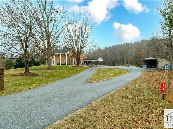 Welcome to 107 Carters View Court, a two-story colonial with one of the best views in the town of Stuart! Many updates will make this home a great entertaining space and sized for a large family. Visitors are welcomed on a two-story porch leading into the living room with a wood-burning fireplace and built-in bookcases and adjacent dining room. The rear of the house is open concept with a huge updated kitchen with granite countertops, large island and spacious den with a fireplace and access to the brick-floored sunroom. Outside entertainment possibilities abound with two patios, a huge enclosed porch and a 33-ft above-ground swimming pool. For the RV enthusiast, there is a covered parking space at the back of the 5.029-acre lot. Five good-sized bedrooms upstairs and a primary suite on the main level will welcome a large family. There are two updated baths, a half-bath off the kitchen and a full bath in the partially finished basement. The home has loads of storage space, including a cedar closet, and access to the attic with approximately 700 sq. ft. of storage. There is additional space in the walk-out basement suitable for a den, bedroom, laundry area, additional storage and gameroom. There is a two-car covered carport by the kitchen door and a couple of outbuildings for storage. Zoned heat pumps were updated in 2015, on-demand hot water heater, whole-house filtration and 400-amp power service complete the mechanicals of the house. Please give at least 24 hours notice to