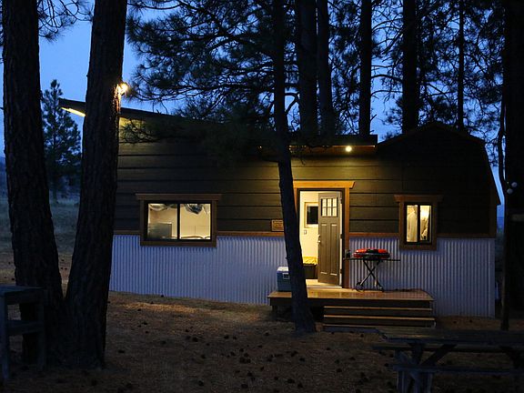 Cabin on 20 acres with huge potential! Solar panels provide interior lights, heat & power & exterior lights & surround sound music system! Cabin includes a comfortable living & sleeping area, the main loft sleeps 2-3, another room which houses the battery & solar equipment & a 2nd loft. This property is paradise! Enjoy music around the firepit, picnic table & an additional trailer that stays. Surrounded by pine trees - a quiet retreat. Only 1 mile off of Hwy 20!