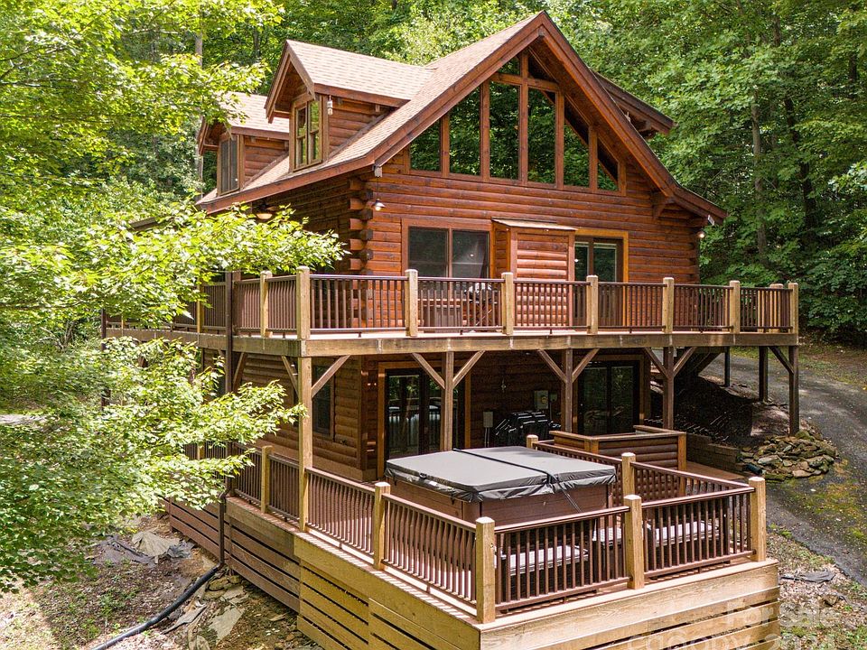 Welcome Home to a stunning oasis nestled in the picturesque mountains of NC. This beautifully maintained fully furnished home features 3 spacious primary bedrooms and 3 full bathrooms (one on each level), making it perfect for a permanant home/vacation home/short term rental. As you step inside, you’ll be greeted by a warm and inviting atmosphere, highlighted by a cozy gas fireplace. The home boasts central AC & heating, ensuring comfort year-round. You’ll love the finished basement, with a second gas fireplace and easy access outside to your own personal paradise! The covered Trex Deck invites you to relax, entertain, or enjoy the stars from your less than 2 year old 8 seat hot tub. Then walk down to the fire pit that offers a perfect spot for evening gatherings under the stars. The expansive lot provides plenty of room for outdoor activities. Surrounded by scenic views and nestled in a wooded lot, this home offers a peaceful retreat!