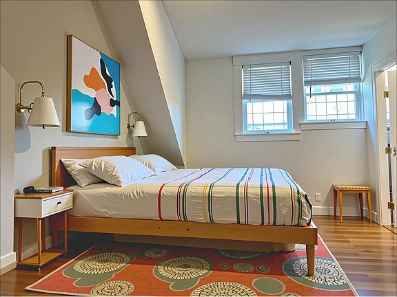The modern kitchen is complete with stainless steel appliances and ample cabinet storage, making it easy to prepare meals at home. A generous closet offers excellent storage solutions, ensuring everything has its place.