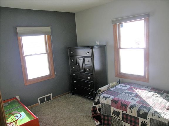 Updated and waiting for you, Third non conforming bedroom in walk-out lower level, no neighbors behind, large 2 car heated garage, updated main bath and kitchen, spacious rec room with bar, walk out to a large patio, deck, storage shed and open fields, Low maintenance siding and steel roof, everything you are looking for in small town living.