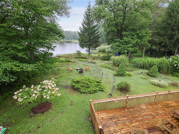 Property Is Under Contract and Accepting Backup Offers Only At This Time! Energy-Efficient Home in Peaceful and Serene Lakefront Setting! Nestled on a flat, landscaped property with western exposure to capture sunsets over the water, this 3+ bedroom, 3 bath home is the perfect retreat. Located in Lake of the Clouds - a quiet, non-short-term-rental community w beach area, recreation facilities & easy access to Lake Wallenpaupack to the north and skiing at Camelback Mountain Resort to the south, this gem is located in the heart of the Poconos. Enter down wide drive and step into open-concept main living space. Large windows and sliding doors invite the outdoors in with direct views of the water. Spacious kitchen w lots of cabinet space and breakfast bar, a nice dining area and well-proportioned living room create a great daily environment. Bedroom and bath on main level PLUS enclosed porch for the perfect home office or study. Upstairs find two separate en-suite bedrooms w vaulted ceilings and balconies overlooking the lake. Full enclosed loft offers another bonus space or 4th bedroom. Outside, the expansive deck provides the perfect place to relax family & friends before heading to the water with firepit and dock. Energy efficient features include owned solar panels w on-site conversion and NEW electric ductless AC/heat system. Newer roof & vinyl siding for easy maintenance. Garage too! This is a great opportunity to own a TRUE lakefront home in a fabulous setting.