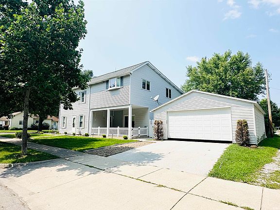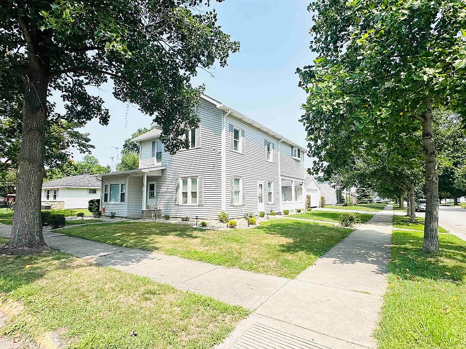 Welcome to New Carlisle! New Prairie schools. Large home with just under 3200 finished sqft. Beautiful corner lot walking distance to the town park and Olive Elementary school. 5 bedroom's, 4 full baths. The main living space has a large kitchen with Corian countertops and appliances. 3 full baths and 4 large BR's, 2 living rooms. Open staircase to the 2nd floor. The master bedroom has a walk-in closet and a huge bathroom. 2nd floor laundry. Nice relaxing covered patio(10x21). Oversized garage(24x32). 200 amp electric. Gas boiler heat(2008), & central air(2020). New roof 2019. Some Pella windows and vinyl siding exterior. The home was raised with a new foundation added in 1985. City water and sewer. Needs some TLC but a good structure.