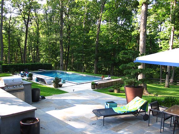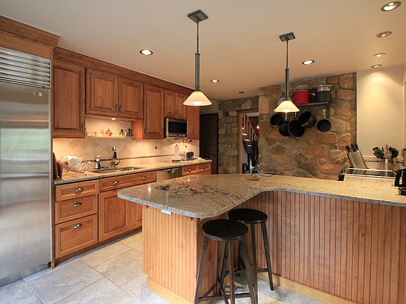 Vacation at home in this beautiful 6.54 acre serene setting. At the end of a long driveway unfolds manicured grounds featuring lush landscaping surrounding an inground pool, stone and paver patios. Foyer entry opens to 2-story living room with beamed ceiling, stone fireplace and wall of windows overlooking patio. Updated kitchen with granite counters, tiled backsplash, high end SS appliances and slider that leads to patio overlooking the pool. Dining room, full tiled bathroom, 2 bedrooms, laundry & powder room complete this level. Upstairs you'll find the office in the open loft space, 2 BRs and a marble bathroom featuring frameless shower and radiant floor heat. Finished basement and finished garage. Back yard BBQ, patios and pool make this home perfect for entertaining or relaxing after a long day.