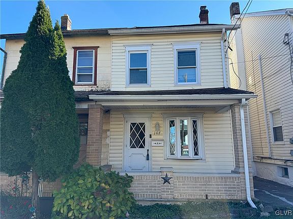 H&B is due Friday, 11/22/24, by 12:00 PM. Step into your imagination when you visit this twin home at 107 Chestnut. As you arrive at the front porch, you'll be greeted by a cozy living room with an ornamental fireplace. A central wooden staircase divides the living room from the dining room. The first floor also features an eat-in kitchen and a full bathroom. On the second floor, you will find three bedrooms, each with potential. The third floor’s unfinished attic offers additional living space or storage options. The basement is accessible through the home and has a separate entrance to the backyard; it is unfinished but includes plumbing for a future bathroom, a storage area, and laundry facilities. Step outside to enjoy the patio and fenced-in backyard. This home is ideally located for outdoor enthusiasts, with easy access to the Ironton rail trail for biking and walking. Additionally, conveniences such as a grocery store, eateries, a community park, and a public swimming pool are all within walking distance. This property is perfect for a handyperson or an investment opportunity, as it requires some TLC but is fully functional. Sold as-is, the buyer is responsible for obtaining the Coplay Certificate of Occupancy.