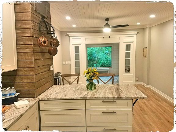 Rare opportunity to own a fully renovated cottage in charming Mountain Park! Everything has been updated in this quaint cottage. New siding, roof, gutters, carport, HVAC, floors, tile, paint! Ready to move in. Freshly painted in neutral greys. Kitchen is gorgeous with new upscale granite counters. All Stainless Steel appliances remain. Kitchen island. Captivating sunroom with ship lap walls, stained wood ceiling and tile floors. Huge picture window overlooking stream and private woods. Three small bedrooms (one can be used as walk in closet or office). One fully renovated bath with tile shower, floors, ship lap and washer/dryer. Back steps lead to level private lot with fire pit and carport. Space to add on to the home. Own a piece of paradise!