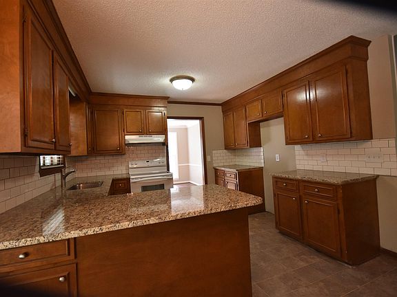 - RoomKitchenFeatures: Granite Counters, Eat-in Kitchen, Cabinets-Natural, Floors-Vinyl, Backsplash-Tiled