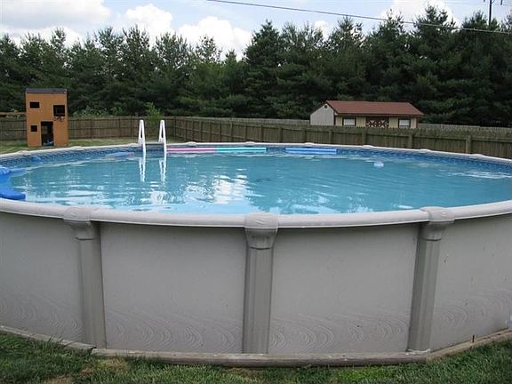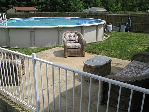 What can you get for under 140k? How about 1143 on the first floor and an 1143 finished basement with theater/rec room, a large, level, fenced back yard (yes, it really is as big as it looks in the pictures), 10x12 shed, playhouse/swing set, and 33 foot x 54 inch deep pool! Home has also had range, dishwasher, disposal, A/C heat pump, pool pump, and water heater recently replaced. Home theater projector & screen and water softener also stay.