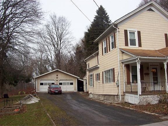 Updated Village home with new windows, insulation, sheetrock, upgraded electrical and plumbing, flooring, appliances, freshly painted interior, and a new, second, full bath. There's a detached, two-car garage. Walking distance to library and local shops. Fourth room on the second floor currently used for storage-could be fourth bedroom.