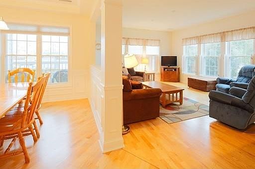 Highly desirable 1st floor Wellington Crossing 55+ unit with deeded garage parking! Features include extra spacious master suite with private bath with double sinks, tub and shower. Formal dining room with hardwood floor,. sunny, bright living room with walk out to balcony, large eat-in kitchen with granite counters, hardwood floor, stainless appliances and pantry, second bedroom is very spacious as well with walk-in closet and extra double closet, laundry room is on main floor for easy access. The heated garage is a pleasant amenity as well. WELCOME HOME!!! OPEN-HOUSE SUNDAY 12:30-2:00