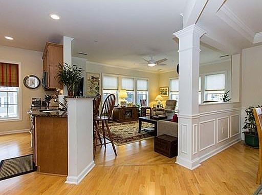 Rarely available corner condo at 55+ Wellington Crossing with 2 garage spaces! Luxury living at it's best at this quiet complex minutes to highways or downtown. This stunning sun filled 2006 built condo has many updates and is still like new with all the bells and whistles for today's buyer. Perfect for the downsizer for one level living. Spacious master suite with high ceilings and large master bath with double sinks, balcony with views of Boston, additional custom closets, ceiling fans, granite and stainless kitchen with under cabinet lights, in unit laundry with auto shut off on washer and water heater as well so you can travel with no worries. Throw away your snow shovels.... this unit comes with 2 spaces in the underground garage as well as additional storage bins. Complex offers on site professional management, pool, tennis court, Rec room, exercise room and much more. A delightful community within minutes to highways, shops and restaurants less then 15 miles from Boston!
