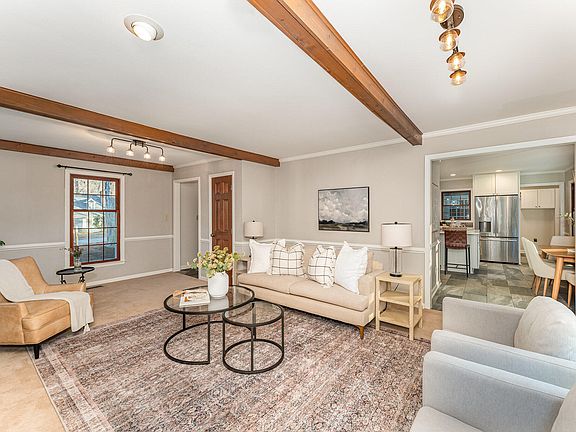 - Beamed Ceilings, Crown Molding, Eat-in Kitchen, Kitchen Island, Kitchen/Dining Room Combination, Quartz Counters, Room Over Garage, Smart Thermostat, Walk-In Shower
