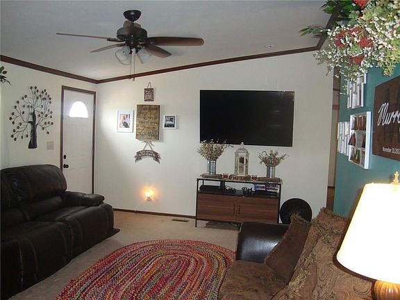 $20,000 price reduction, now $109,000. Home is in a quiet area of town with a view of the countryside. Entry is into a large Living Room with vaulted ceilings and view into dining area with patio door to a 20' X 20' covered deck. Split bedroom Floor Plan. Vaulted ceilings throughout. Master is nice size and has full bathroom with garden tub, and separate shower with double sinks and access to utility room. Utility Room has space for laundry and built-in utility sink with door to back yard. Three bedrooms on opposite end of home with large full bathroom with tub/shower combination. Kitchen has nice cabinetry, plus a pantry, and an island workspace. Wood privacy fence surrounds a large back yard, with the 20' X 20' Covered Deck to enjoy viewing outdoor activities. Storage Shed for your lawn equipment.