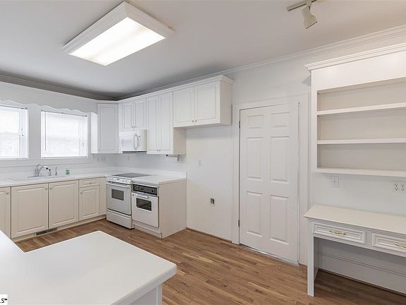 Beautiful colonial white house on 9 acres of land, 10 minutes to downtown Greenville! This home was the first stage coach in Greenville and the home was built around a log cabin - there is a neat window that shows the original log cabin below the siding in the breakfast room! Hardwoods throughout. Large living room with gas log fireplace. New wiring including new electrical breaker box on exterior, new plumbing on main level. 4 bedrooms 4 full baths with a flex room, bonus room, sun room and sound-proof office as additional living spaces! Master on the second with sitting room, multiple closets, dual vanities. Crown molding throughout home with thick baseboard molding. Screened/sun room on second level. Beautiful barn and cookout/shed on the property along with a creek. Engineer rendering of possibilities to build-out property in associated docs.