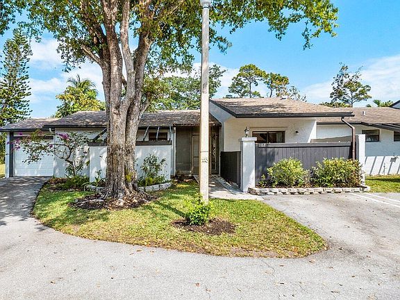 This Two Bedroom, Two Bath, 1191SF end Villa with Garage with additional parking, sits on premium .18-acre lot. Don't let anyone tell you size does not matter... in Real Estate. Average Villa lot size is .07 acres in the area. This oversized lot combined with the large 260SF Lanai. The floors are tile throughout with newly installed carpet in the master bedroom. This home is move-in ready with fresh paint inside and out. The Roof was replaced by the HOA in 2014, a Hot Water Heater was installed 2018, HVAC System install 2014. This villa comes complete with washer and dryer which are conveniently located within the garage with direct access from the master bedroom. The living room and both bedrooms have direct access to the lanai from sliding glass doors. There is a spacious living/dining room combination and an eat-in fully equipped kitchen with a glass sliding door leading into a private front patio. The garage comes easy access pull down staircase leading to a floored attic space. A second attic space is located in the master bedroom giving you plenty of additional storage and leaving your garage to protect your car from all the elements of near beach living. Indian Trail Villas is a beautiful very quiet small community consisting of 126 townhomes located in Royal Palm Beach within minutes to the Turnpike and approximately 20-25 drive to the beach. Royal Palm Beach has that small town feel featuring several golf courses, beautiful public parks, several bistros, stores and a short drive to the varying shopping centers. Royal Palm Beach has many top-rated schools and is the perfect place for those looking to retire. The HOA covers lawn service, cable, and exterior pest control with access to the community pool complete with sundeck. If you own a pickup truck, yes you can park it here at Indian Trails Villas. Come on over put your feet up and relax with your favorite beverage, watch the sunset over the waterway and know that you will not be the one mowing the lawn in the morning.