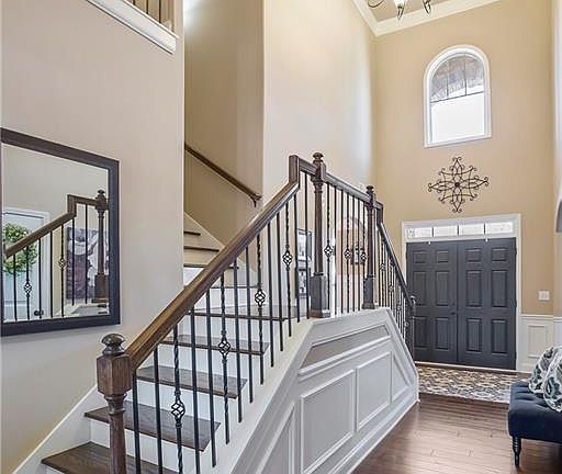 - Ceiling Fan, Connection - Washer, Countertops-Granite, Dryer Connection-Electric, Electric Garage Door, Garden Tub, Gas Logs, Laundry Room Sink, Some 9' Ceilings, Walk-In Shower, Blinds, Built-In Bookcases, Smoke Detector, Alarm System-Owned, Attic Stairs-Disappearing, Cathdrl/Raised Ceilings, Ceilings-Smooth, Tray Ceilings, 2-Story Foyer, Jack and Jill Bath, Plantation Shutters, Washer Connection