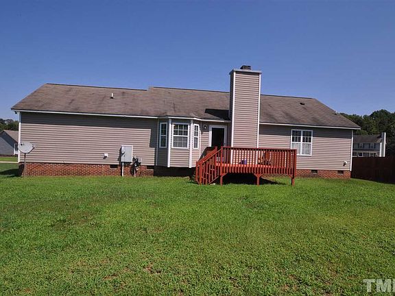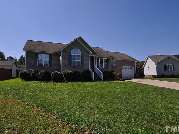 One floor living in Garner on a cul-de-sac lot. Enter the front door into the living room with a separate dining room to your right. Living room with vaulted ceiling and ceiling fan with access to the back deck. Oversized 24X22 garage. Master Bedroom with vaulted ceiling and ceiling fan connects to Master bath with fiberglass tub and shower. Both secondary bedrooms are good sized with ceiling fans as well.