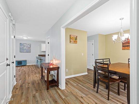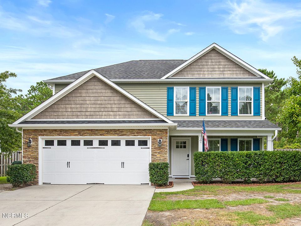 Welcome home to 107 Cornel Ln! This lovely, well maintained home is sure to please! Home features include LVP flooring on the main level, a separate dining area, and updated kitchen with granite counter tops, and a pantry. Upstairs you'll find a landing area featuring extra space for play, work, or entertaining, laundry room, and all 3 bedrooms. The primary suite offers generous closet space with built in shelving and a spacious ensuite bathroom with separate shower and soaking tub. Outside, enjoy a fully fenced yard that backs to trees, with a spacious shed for storage. The Dogwood Lakes subdivision is a gem of a neighborhood featuring mature trees, sidewalks, a beautiful community pavilion and creek access. Harris Teeter, Lowes, Surf City Brewing Co, and other shops and restaurants are just a quick bike ride or walk away - or venture into Surf City for more options! To top it off, the new owners of this property are eligible to receive two complimentary Surf City parking passes that cover Surf City beach access and public parking areas!