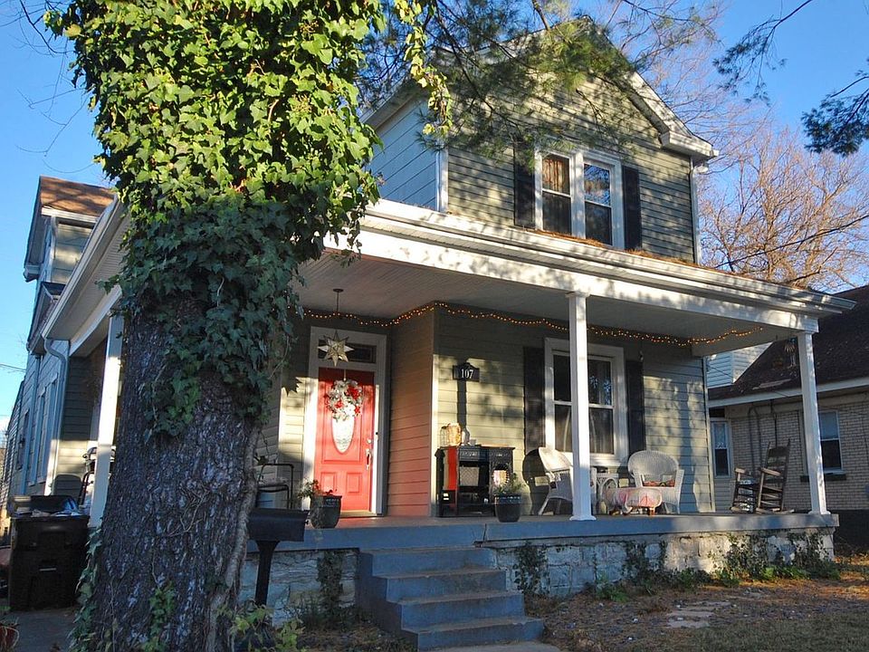 Large, old home full of charm and character! Former duplex converted to single Family home but could easily convert back to a duplex. Large wrap around front porch with French doors leading into the spacious, light infused dining room. 11 ft tall ceilings in some rooms. Professionally refinished hardwood floors downstairs, many replacement windows, several stained glass windows, detailed crown molding and door frames, door transoms, and exposed brick walls and 2 car garage with alley access. New farmhouse Kitchen opens to the Dining Room. Many, many updates throughout the home. The upstairs features a large Family Room, Kitchenette, full bath, and 2 bedrooms. Walk to fine Frankfort Avenue restaurants, boutique shops, entertainment, city parks and enjoy the St. Matthews life style.