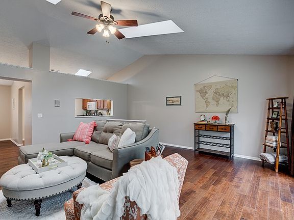 Buyers could not get financing so here is your chance.absolutely a dollhouse! Owner installed rich hardwood flooring and carpet throughout. Replaced most windows. Updated fixtures. Brighten and tilted the wood-burning fireplace. Home offers direct entrance garage, open airy feel, skylights, direct walk out to grassy private area in back. Small community with club house and pool. Model home feel.