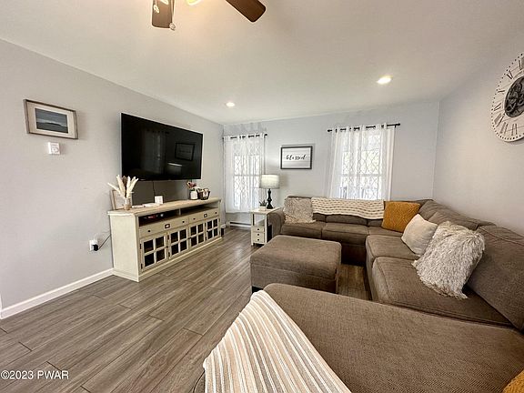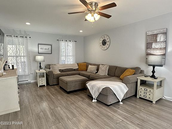 Gorgeous 4 Bedroom 2.5 Bath home in mint condition. Perfect for short term rental or for you to enjoy. The open floor plan lends itself to the perfect entertaining home. All rooms are very spacious with ample closet space. Relax after a long day in your master en-suite. Sit with your coffee in the morning on your covered front porch and listen to the birds chirping in this peaceful setting. The large garage is great for your cars and storage. If you are looking for privacy yet close to the lake, stores, restaurants and a short walk to schools, this is for you. Located in a perfect location for rentals! Relax in the hot tub or sit by the firepit & kick back. Walking distance to Lake Wallenpaupack for boating, swimming & fishing, the beach & the campground. Furniture included. Low taxes, Beds Description: 2+BED 2nd, Baths: 1 Bath Level 1, Baths: 2 Bath Lev 2, Eating Area: Dining Area