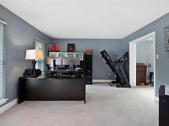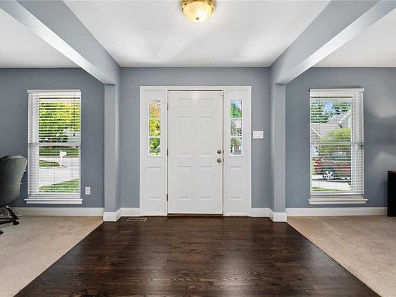 Beautifully updated FIVE bedroom, 4.5 bath home on cul-de-sac lot backing to trees! Tons of updates! Zoned Hi Eff HVAC and energy eff triple pane windows. Impressive two-story great room with arched windows and woodburning fireplace is open to the recently updated kitchen/breakfast room. Hardwood flooring in kitchen with soft-close cabinets/drawers, granite counters, center island/breakfast bar, planning desk, glass tile backsplash and SS appliances! Front/back T- stairs lead to UL. Vaulted Master with his/hers walk-in closets and gorgeous updated bath with luxury vinyl plank flooring, soaking tub, oversized shower & double vanity. Three addl bedrooms, two with Jack-n-Jill bath & third with private bath complete the UL. Finished walk-out lower level offers spacious rec room, 5th bedroom and 4th full bath, and storage too! Large low maintenance deck graces the back of the home while the partially-covered paver patio overlooks level yard backing to trees. Relocation docs to be signed.