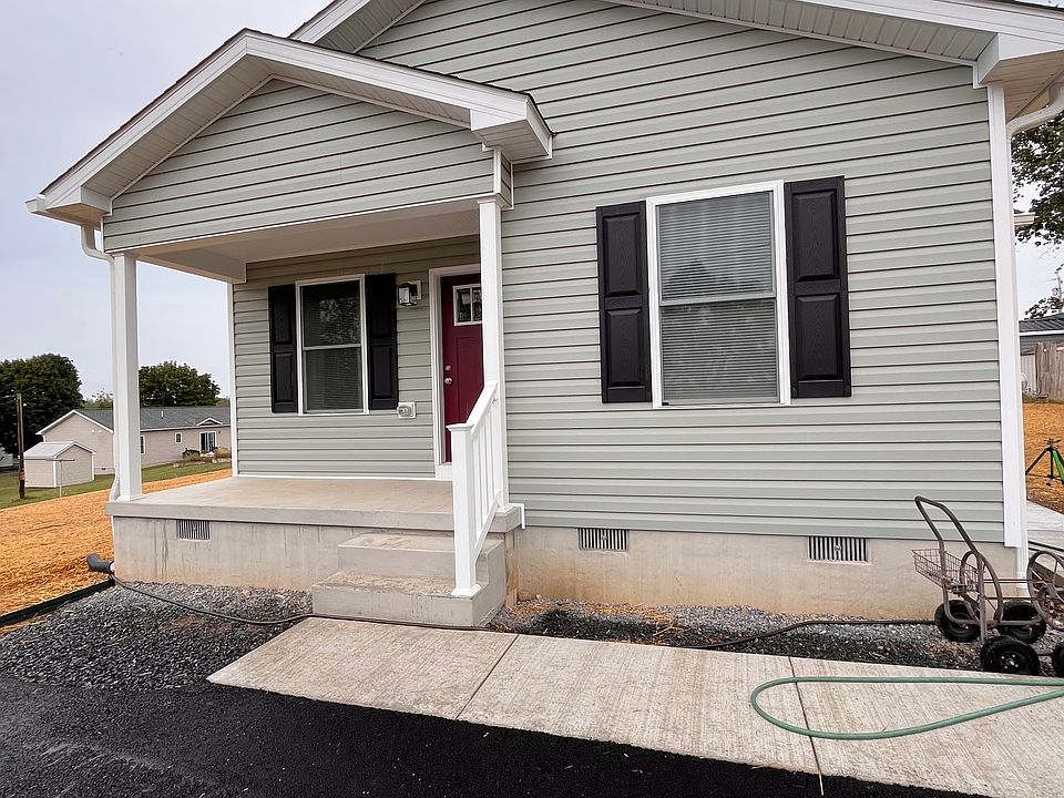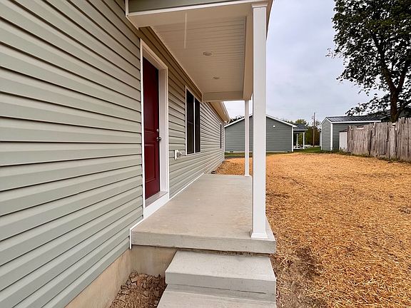 New construction 2 porches, concrete walk, paved driveway. Small yard.